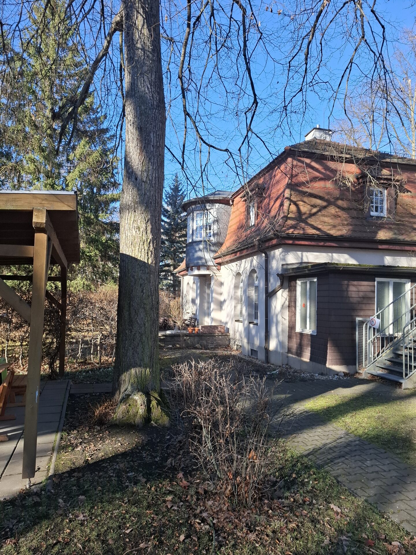 Objektbeschreibung: Das Grundstück ist bebaut mit einer 2-geschossigen Villa (ehemaliges Gartenhaus zu Scheringerstr. 1) und ist umgeben von einem weiträumigen, parkähnlichen Garten mit bemerkenswertem Baum- und Buschbestand sowie älterer, originaler Einfriedung und einer Steinbank. Das gesamte Objekt steht unter Denkmalschutz, da bau- und gartengeschichtlich von großer Bedeutung.
