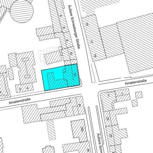 | Objektbeschreibung: | Es handelt sich um ein herrenloses, bebautes Flurstück. Das dreigeschossige, teilweise unterkellerte Gebäude ist an der Äußeren Schneeberger Straße/Ecke Amalienstraße gelegen und befindet sich im stark sanierungsbedürftigen Zustand. Das zentrumsnahe Grundstück ist umgeben von größtenteils sanierten Wohn- und Geschäftshäusern und sehr gut an den ÖPNV- und Straßenverkehr angebunden. |