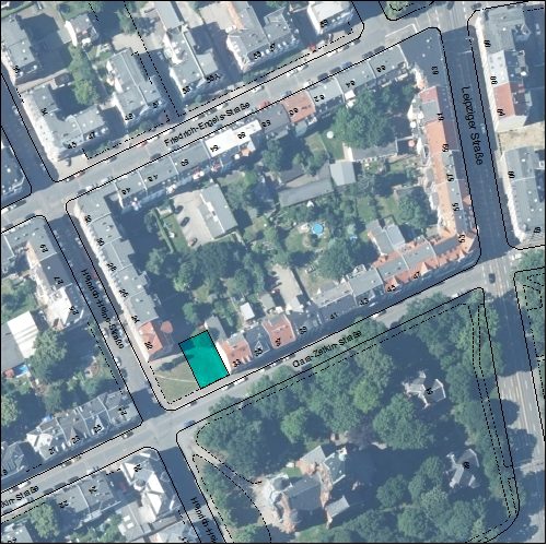 | Planungsrecht/Planungsziel: | Planungsrechtlich befindet sich das unbebaute Flurstück im Innenbereich nach § 34 (2) BauGB. Entsprechend der Eigenart der näheren Umgebung handelt es sich um ein allgemeines Wohngebiet nach § 4 BauNVO. Im Entwurf zum Flächennutzungsplan (FNP) mit Stand 02/2013 ist das Flurstück als Wohnbaufläche dargestellt. Eine Neubebauung ist gewünscht. Diese sollte die straßenbegleitende Blockrandbebauung entlang der Clara-Zetkin-Straße vervollständigen und sich hinsichtlich der Gebäudestruktur (dreigeschossig) harmonisch in die vorhandene Umgebungsbebauung einfügen. Eine Nutzung für Stellplätze ist ausgeschlossen. |