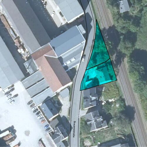 Besonderheiten: Verkauft wird das Flurstück 314 mit aufstehenden Gebäuden. Vor Verkauf ist die auf dem Grundstück liegende öffentlich gewidmeten Fläche herauszumessen. Über das Gartengrundstück 313 (Größe 330 m²) kann derzeit nur ein Pachtvertrag geschlossen werden, da momentan noch in einem Planverfahren der DB geprüft wird, ob Teile des Grundstückes für die Errichtung eines Bahnüberganges für Fußgänger und Radfahrer benötigt wird. Das Ergebnis soll Ende 2027 feststehen.