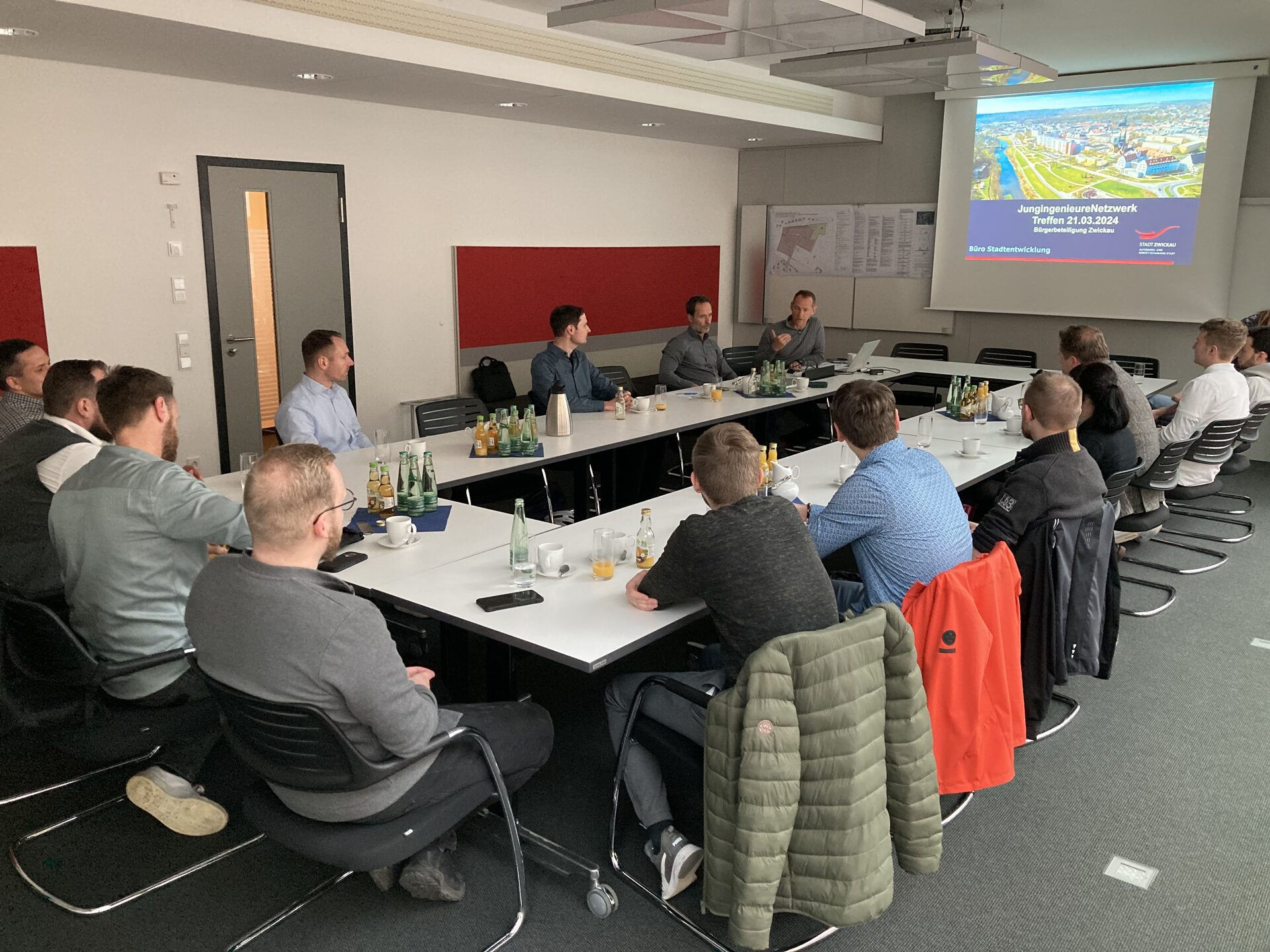 Funfact: Das Treffen fand im Hermann-Mühlpfort-Raum statt, Herr Mühlpfort war 1521 bis 1533 Bürgermeister der Stadt Zwickau. Normalerweise werden and diesem Ort Besprechungen zu wichtigen Entscheidungen in der Stadt durchgeführt. Dies zeigt, welche Wichtung den jungen Ingenieurinnen und Ingenieuren durch die Stadtverwaltung zugestanden wurde.