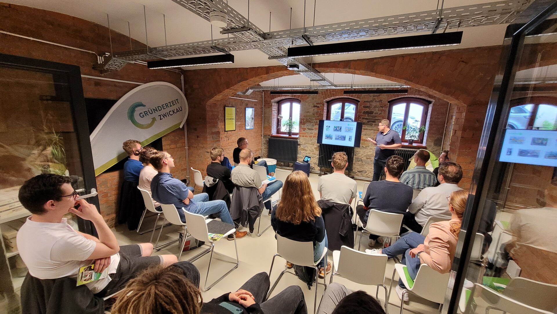 Am Abend traf man sich in der rekonstruierten historischen Villa Falck in der Äußeren-Schneeberger-Straße, dort befindet sich im Erdgeschoss seit 2023 (durch Stadt und Region Zwickau initiiert) das Startup-Center „Gründerzeit“.