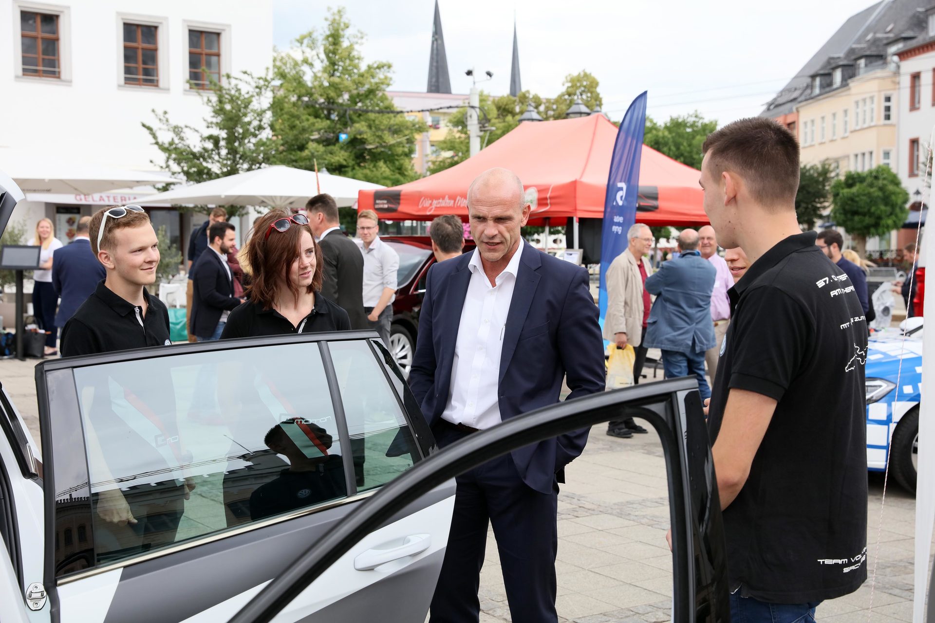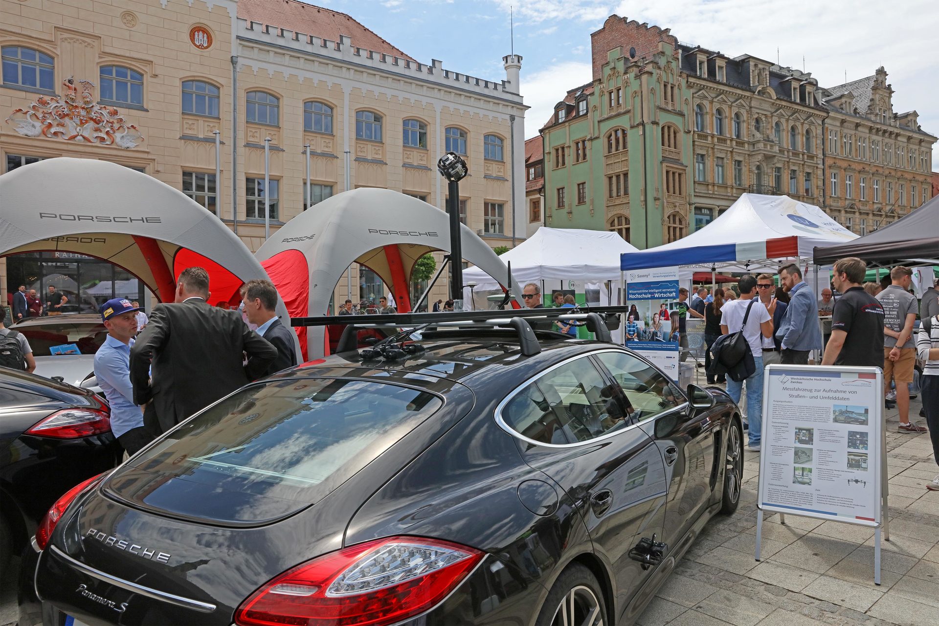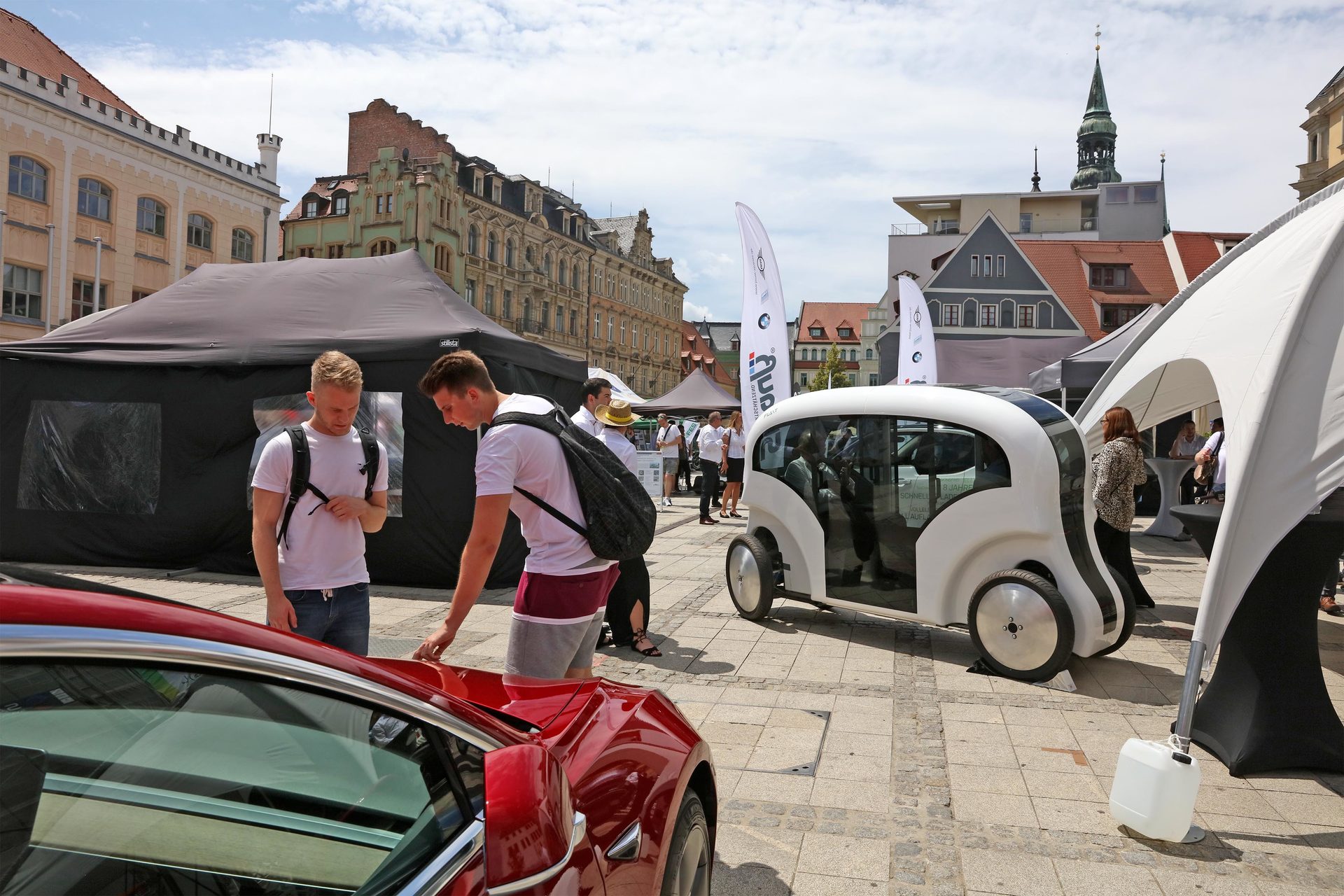 Die gewonnenen Impulse konnten die Besucher bei der Eventausstellung auf dem Hauptmarkt mit den Ausstellern diskutieren. 18 Unternehmen aus der Region Westsachsen, darunter namhafte Akteure wie das Zwickauer Unternehmen FES GmbH Fahrzeugentwicklung Sachsen oder die Porsche Leipzig GmbH sowie junge Unternehmen wie die FDTech GmbH aus Chemnitz oder die Zwickauer Start-ups Pendix GmbH und Alpha Sigma GmbH präsentierten innovative Fahrzeuge und Mobilitätskonzepte der Zukunft. Eine der Mitmachaktionen war der Fahrsimulator mit dem Porsche Panamera, den die Besucher am Stand der Westsächsischen Hochschule Zwickau einmal selbst ausprobieren konnten.