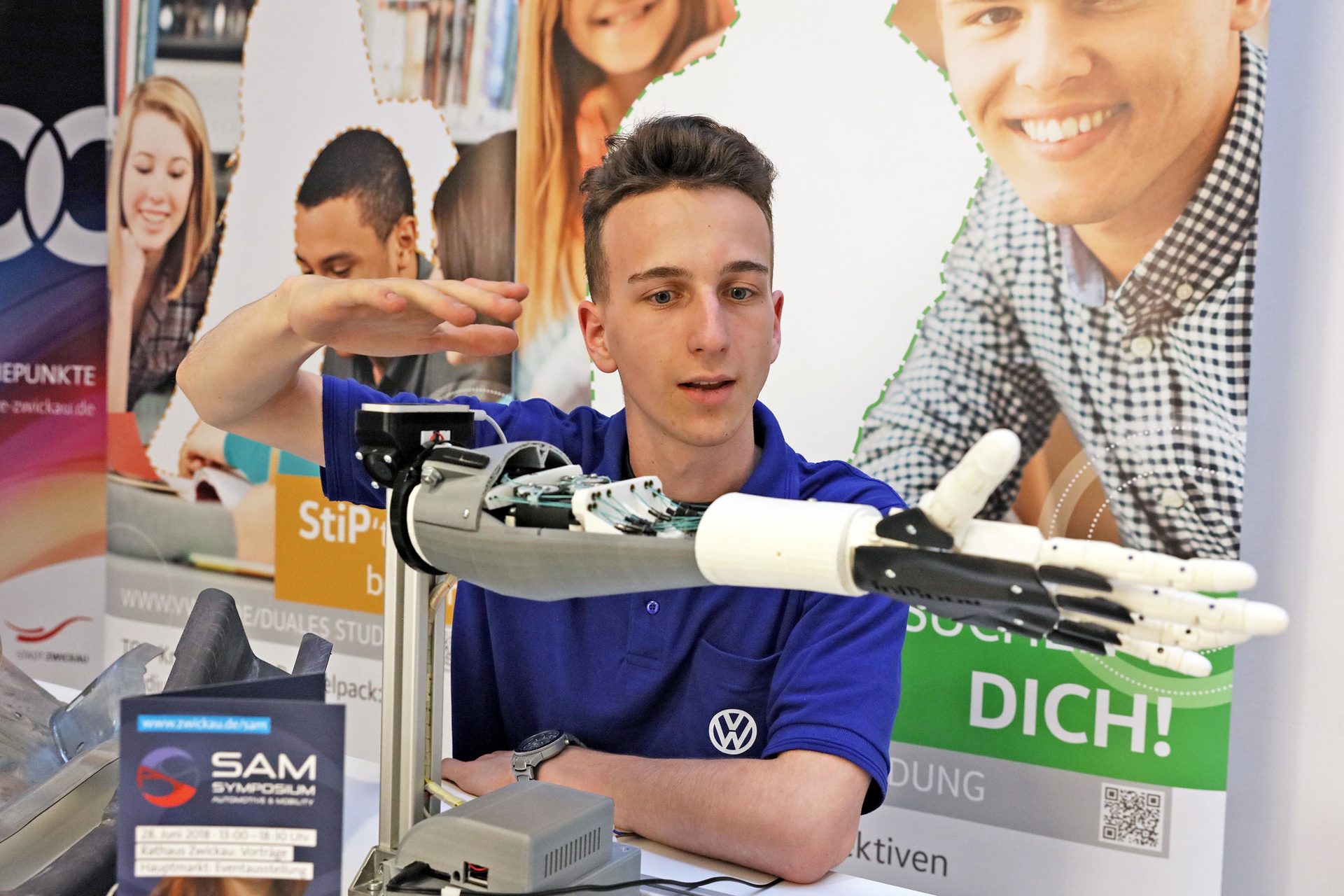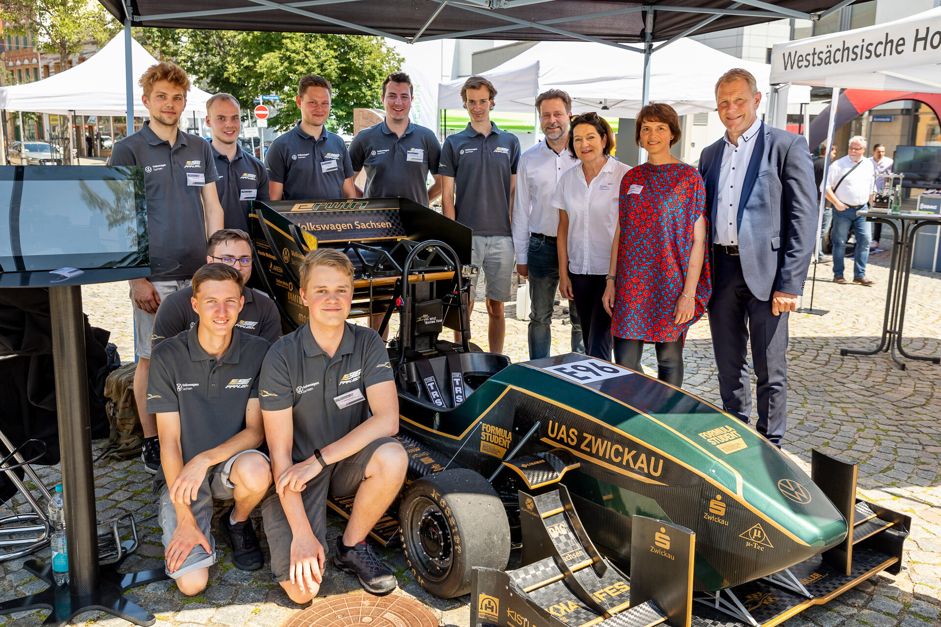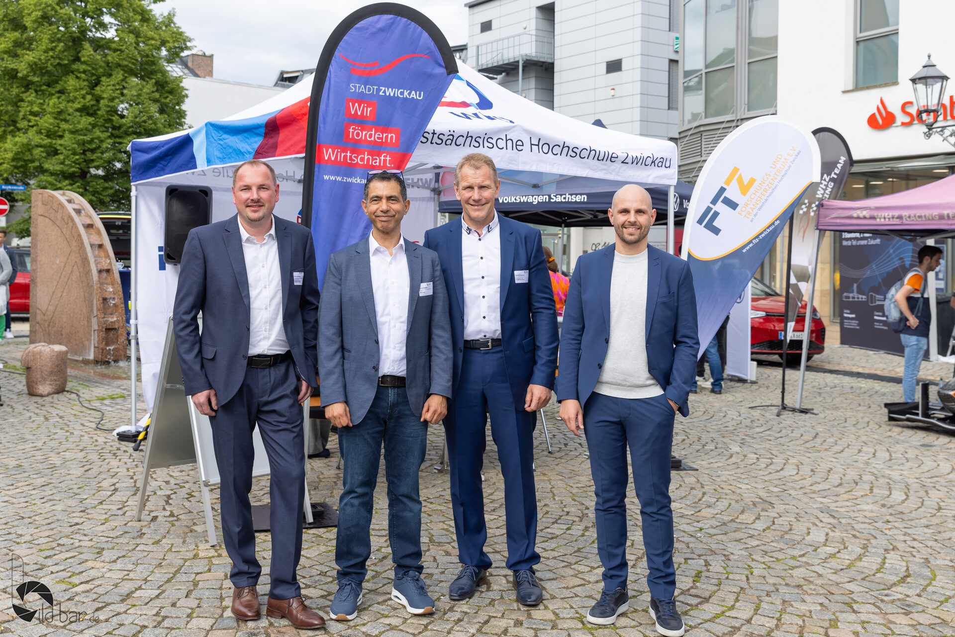 Die gewonnenen Impulse konnten die Besucher bei der Eventausstellung auf dem Hauptmarkt mit den Ausstellern diskutieren. 18 Unternehmen aus der Region Westsachsen, darunter namhafte Akteure wie das Zwickauer Unternehmen FES GmbH Fahrzeugentwicklung Sachsen oder die Porsche Leipzig GmbH sowie junge Unternehmen wie die FDTech GmbH aus Chemnitz oder die Zwickauer Start-ups Pendix GmbH und Alpha Sigma GmbH präsentierten innovative Fahrzeuge und Mobilitätskonzepte der Zukunft. Eine der Mitmachaktionen war der Fahrsimulator mit dem Porsche Panamera, den die Besucher am Stand der Westsächsischen Hochschule Zwickau einmal selbst ausprobieren konnten.