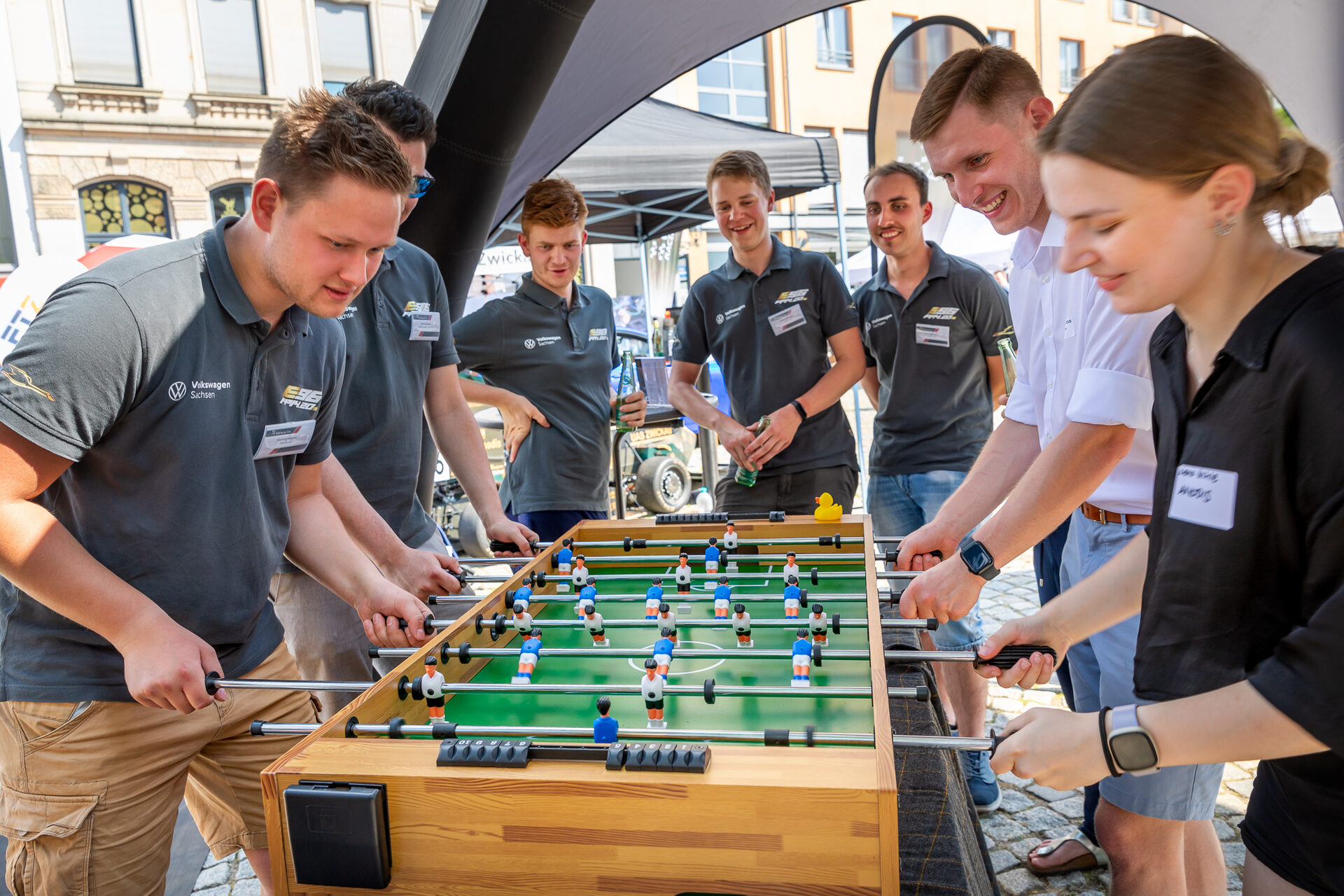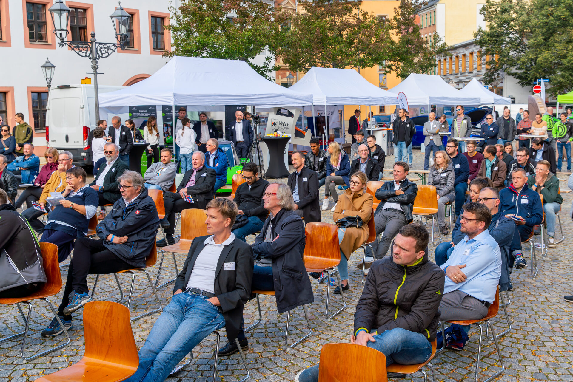 Rund 200 Gäste nutzen die Gelegenheit, sich bei bestem Herbstwetter den spannenden Themen der Mobilität von morgen zu widmen und sich mit aktuellen und künftigen Fachkräften der Automobilbranche zu vernetzen. Dafür bot die Erlebnisausstellung auf dem Kornmarkt einen optimalen Rahmen. Zehn Aussteller zeigten innovative Fahrzeuge und veranschaulichten Konzepte für die künftigen Entwicklungen in der Mobilität. Außerdem gab es Mobilität zum Ausprobieren, z. B am Stand von Pendix. Die Zwickauer Spezialisten rund um elektrische Antriebe für Fahrräder waren auch auf der Redner-Bühne vertreten. Thomas Herzog, CEO der Pendix GmbH, gab Einblicke in eines der wachstumsstärksten Unternehmen der Region und machte deutlich, warum das Fahrrad auch in Zukunft eine wichtige Rolle spielen wird.