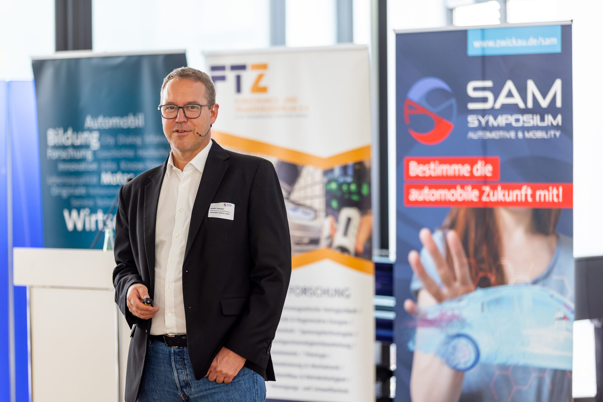 „Der Umbruch in der Automobilindustrie bietet jungen Ingenieuren unfassbar viele neue und spannende Aufgaben – gerade auch hier in der Region. Das den Schülern und Studierenden zu vermitteln, ist ein Hauptanliegen des Symposiums Automotive & Mobility“, erklärt Prof. Dr. Matthias Richter, Vorstand des Forschungs- und Transferzentrums und Professor für EMV und Nachrichtentechnik an der Westsächsischen Hochschule Zwickau. Er hat die Veranstaltung gemeinsam mit dem Büro für Wirtschaftsförderung der Stadt Zwickau organisiert. „Der Mehrwert einer solchen Veranstaltung wächst mit den Möglichkeiten, sich zu vernetzen. Deshalb bin ich sehr glücklich, dass wir die Teilnehmerzahl im Vergleich zum Vorjahr noch einmal steigern konnten“.