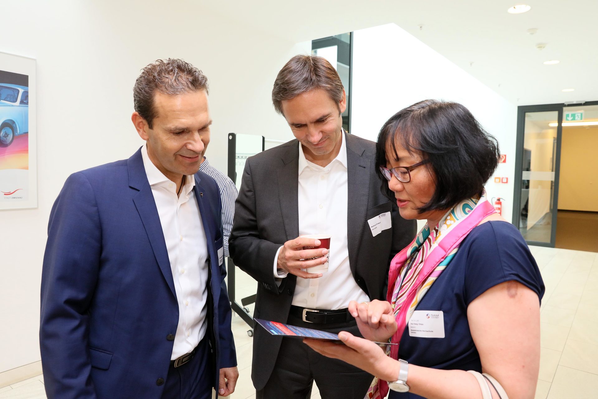 Am 28. Juni 2018 fand die zweite Auflage von SAM statt. Mehr als 200 Teilnehmer kamen ins Zwickauer Rathaus und auf den Hauptmarkt. Experten diskutierten dabei mit Schülern und Studierenden über die Zukunft der Automobilregion. Als Keynote-Speaker stellte Thomas Ulbrich, Vorstand für E-Mobilität der Marke VW und Sprecher der Geschäftsführung der Volkswagen Sachsen GmbH, die Perspektiven für den Volkswagen-Standort Zwickau vor. 1,2 Milliarden Euro investiert der Konzern in den kommenden Jahren, um sein Werk in Zwickau-Mosel komplett umzurüsten. Mehr als 300.000 E-Fahrzeuge sollen hier perspektivisch vom Band laufen. „E-Mobilität ist auf dem Weg vom Nischen- zum Volumenprodukt. Und wir als Volkswagen können Volumen“, macht Thomas Ulbrich deutlich.