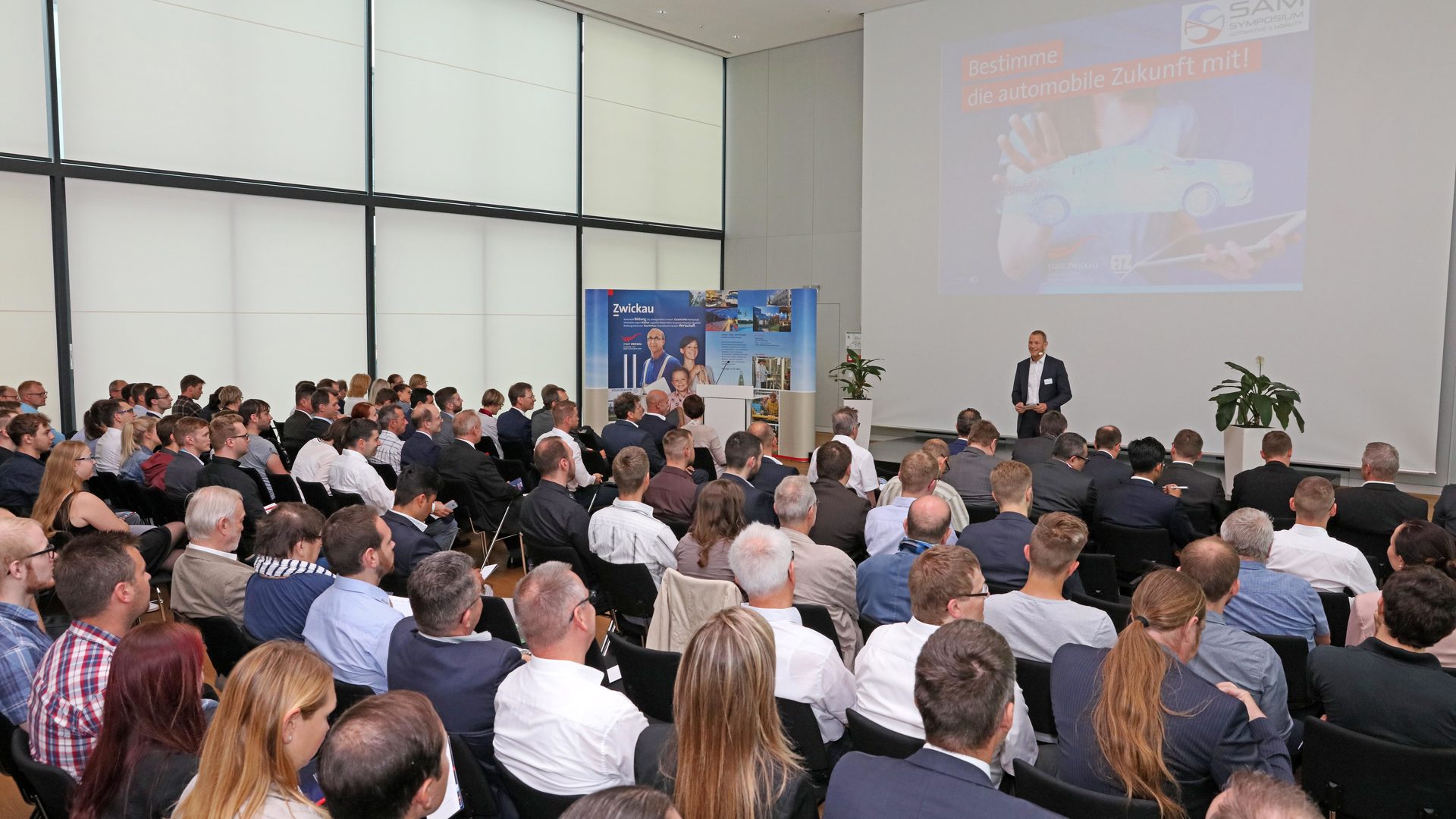 SAM übernimmt als Netzwerkplattform eine wichtige Rolle, wenn es darum geht zu zeigen, welche Technologien und Themen unsere „Mobilität von morgen“ verändern. Dabei geben Fachvorträge namhafter Referenten aus der Automobilindustrie wichtige Impulse, welche Chancen sich aus den zukünftigen Themen für die Region Westsachen ergeben. Die Eventausstellung auf dem Hauptmarkt gab den 250 Teilnehmern die Gelegenheit innovative Fahrzeuge und zukunftsweisende Konzepte hautnah zu erleben. Darüber hinaus verbindet das Symposium die verschiedenen Akteure der Automobilindustrie mit jungen Fachkräften von morgen, um diesen Einstiegsmöglichkeiten in der Region aufzuzeigen.