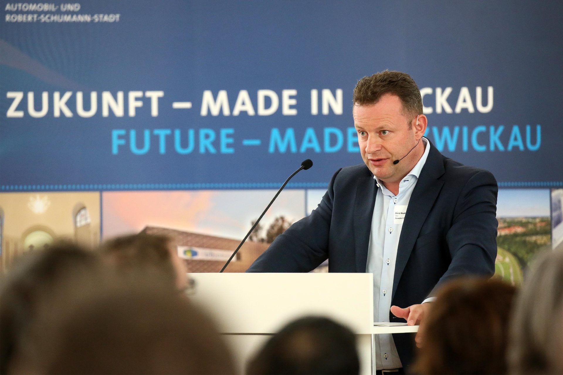 14 Uhr begannen die Vorträge im Bürgersaal des Rathauses. Vier hochkarätige Referenten aus der Industrie nahmen das Publikum mit auf den Weg zur „Mobilität von morgen“. Regionale Impulse gab es von Robert Janssen, der als Vorsitzender der Geschäftsführung Volkswagen Sachsen GmbH Einblicke in die Transformation des Standortes gab. Ronald Gerschewski, der Geschäftsführer der IndiKar GmbH, zeigte die aktuellen Herausforderungen im Sonderfahrzeugbau auf, die eine Balance zwischen automobiler Transformation und höchsten Sicherheitsanforderungen verlangt und warb bei den Fachkräften von morgen um eine berufliche Zukunft in der Region. Über die Zukunftstrends im Bordnetzsystem berichtete Frank Dambacher, Leiter Energienetz und Konzept von der Porsche AG. Der Leiter für Vorentwicklung und Patentmanagement in der Preh GmbH, Dr. Matthias Lust, gab den Zuhörern einen Einblick in die Trends für Automotive Interior und HMI.