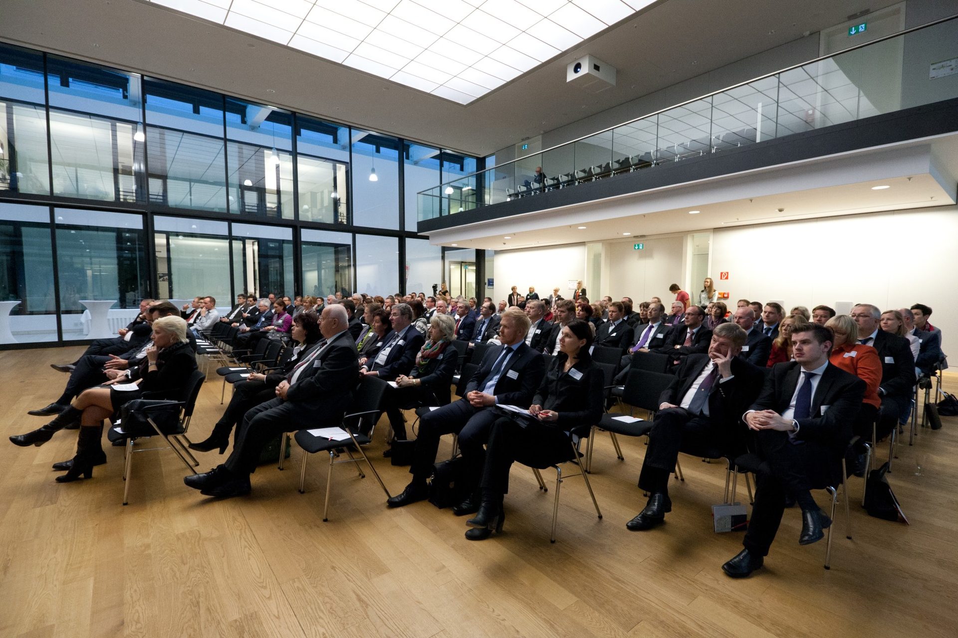 Neben dem Vortragsprogramm nutzten die Gäste am Buffet intensiv die Gelegenheit, sich mit den Experten auszutauschen und neue Kontakte zu knüpfen. Das Atrium des Rathauses in Zwickau bot dazu den passenden Rahmen.