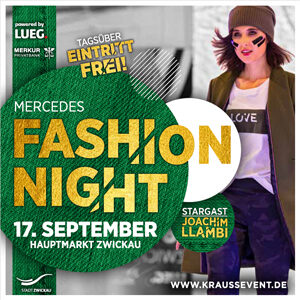 Am 17. September 2022 verwandelt sich die Zwickauer Innenstadt bereits zum zwölften Mal in Folge in einen großen Laufsteg. „Die Stars“ des rund zwölfstündigen Mode-Events sind ausnahmslos die Zwickauer Einzelhändler selbst! Darauf liegt der Fokus der Veranstalter, dem Büro für Wirtschaftsförderung der Stadt Zwickau und der Krauß Event GmbH. Die Fashion-Shows starten um 11:30 Uhr. Knapp 40 Einzelhändler stellen dann in thematisch choreografierten Modenschauen die neuen Trends und Kollektionen auf einer überdachten Laufstegbühne vor, die mit 800 Quadratmetern noch größer wird als im Vorjahr. 18 Uhr wird es ein neues Programmhighlight geben: Unter dem Motto „Lets Fashion“ lädt Stargast Joachim Llambi zum Open Air Salsa-Tanzkurs auf den Hauptmarkt ein. Die Teilnahme am Tanzkurs ist kostenfrei. Weiterhin wird Joachim Llambi gemeinsam mit Radio Zwickau-Moderatorin Tina Wojnowski ausgewählte Modenschauen tagsüber begleiten sowie am Abend die exklusive Abschluss-Show moderieren, die erstmals ebenfalls auf dem Hauptmarkt stattfindet. Studentinnen und Absolventinnen der Westsächsischen Hochschule Zwickau können ihre Kollektionen so einem noch größeren Publikum präsentieren und um den begehrten „Mercedes Fashion Night Award“ wetteifern.