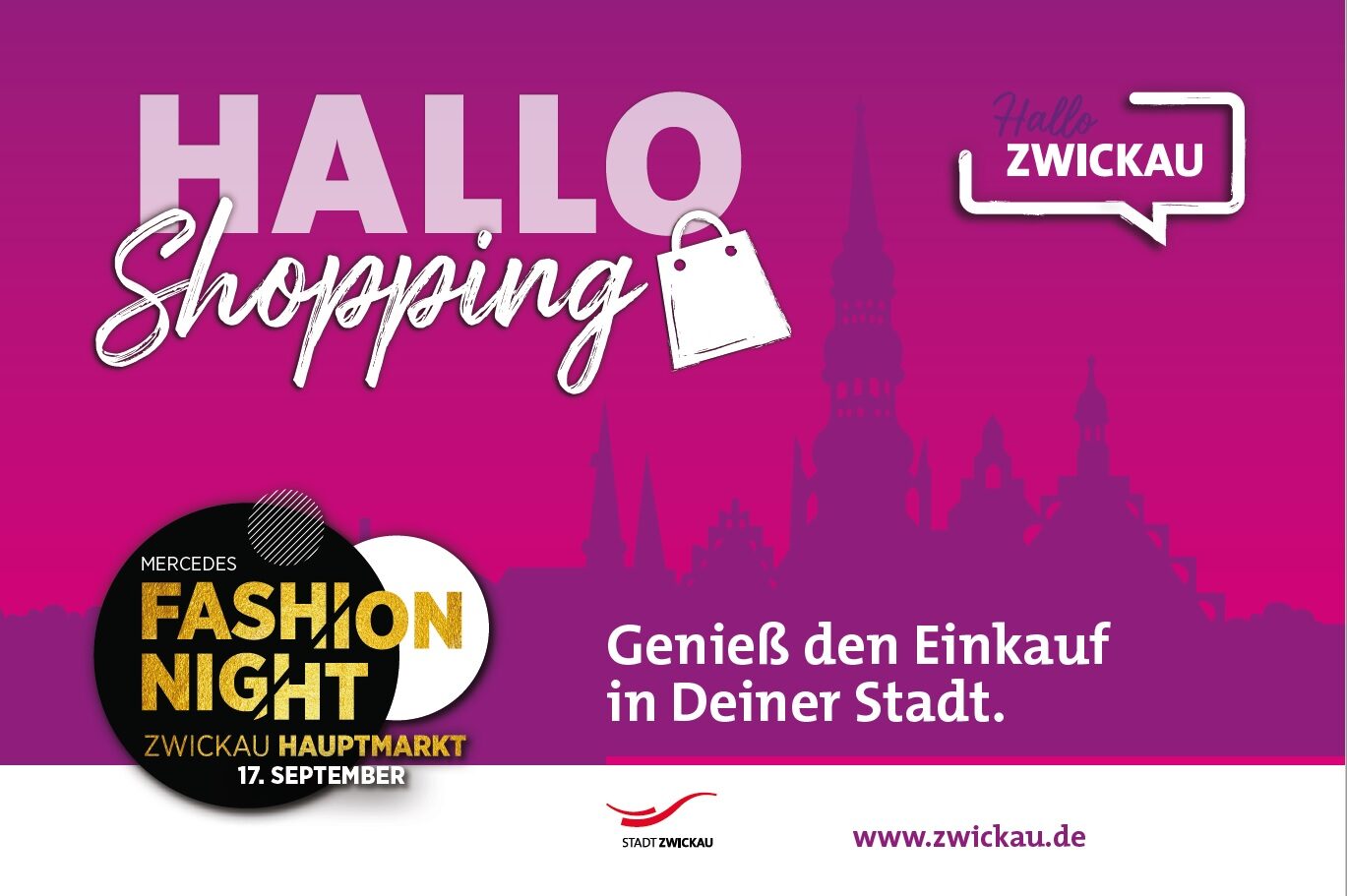 Der Eintritt für die Modenschauen (tagsüber) auf dem Hauptmarkt Zwickau ist wie immer kostenfrei. Alle Informationen und Tickets für die große Abendgala gibt es unter