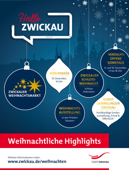 Zur bestmöglichen Unterstützung der Innenstadt-Händler hat das Büro für Wirtschaftsförderung daher umfangreiche Marketing-Maßnahmen initiiert und umgesetzt: 500 A1 Plakate wurden im Stadtgebiet sowie im Landkreis Zwickau als auch im benachbarten Vogtlandkreis plakatiert, Radio Spots wurden in der Stadt sowie in der gesamten Region inklusive der Landkreise Chemnitz, Erzgebirge und Vogtland geschaltet und in der örtlichen Presse wurden Anzeigen platziert, die auf die weihnachtlichen Highlights in Zwickau hinweisen. Die positiven Rückmeldungen aus dem Handel zeigen, dass die Maßnahmen fruchten: der erste verkaufsoffene Sonntag war bereits ein Erfolg!