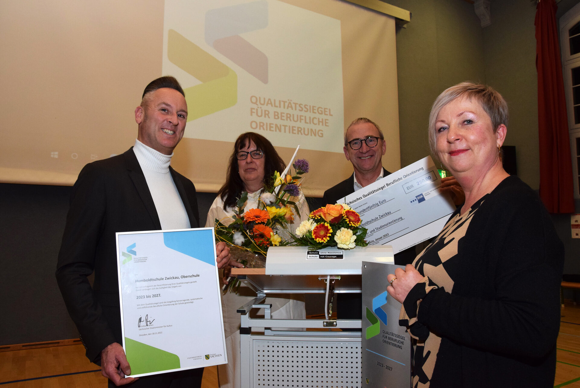 Es ist geschafft: Nachdem der Humboldtschule bereits 2013 das Sächsische Qualitätssiegel für Berufliche Orientierung verliehen wurde, unterzog sie sich im vergangenen Jahr erneut der Rezertifizierung. Im Ergebnis des mehrstündigen Audits stellte die Jury fest, dass die Oberschule die hohen Standards der Auszeichnung weiterhin erfüllt.