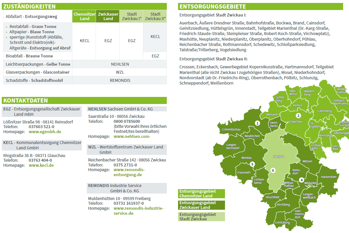 Ansprechpartner für die Abfallentsorgung ist das Amt für Abfallwirtschaft im Landkreis Zwickau.