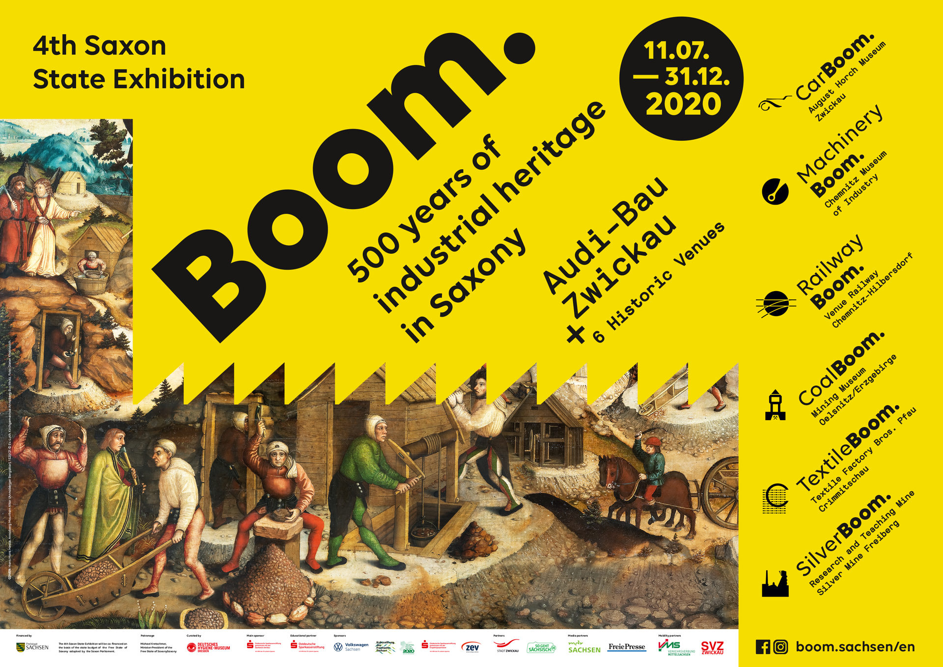 For Saxony, the year 2020 will focus upon its rich and fascinating industrial heritage. The highlight of the “Year of Industrial Heritage” forms the 4th Saxon State Exhibition, running from 11st July until 1st November 2020. It will present both the city of Zwickau, known for its automotive industry and the musician Robert Schumann, and the region of southwest Saxony as one of the most significant cradles of European industrialisation. Titled Boom. 500 years of industrial heritage in Saxony, the state exhibition will celebrate Saxony’s pioneering ideas, inventions, and products which have revolutionised the world for the past five centuries. On around 2,500 square metres, a central exhibition at the Audi-Bau Zwickau with the same title will showcase Saxony’s history of technology, science, and culture in a historical and multimedia-based panorama. A further six authentic venues in the region will present fascinating special exhibitions. The August Horch Museum Zwickau - CarBoom., the Chemnitz Museum of Industry - MachineryBoom., the Saxon Railway Museum Chemnitz-Hilbersdorf - RailwayBoom., the Mining Museum Oeslnitz/Erzgebirge - CoalBoom., the Textile Factory Bros. Pfau Crimmitschau - TextileBoom. and the Silver Mine Freiberg - SilverBoom. will bring to life the historical, current, and future industries in Saxony.