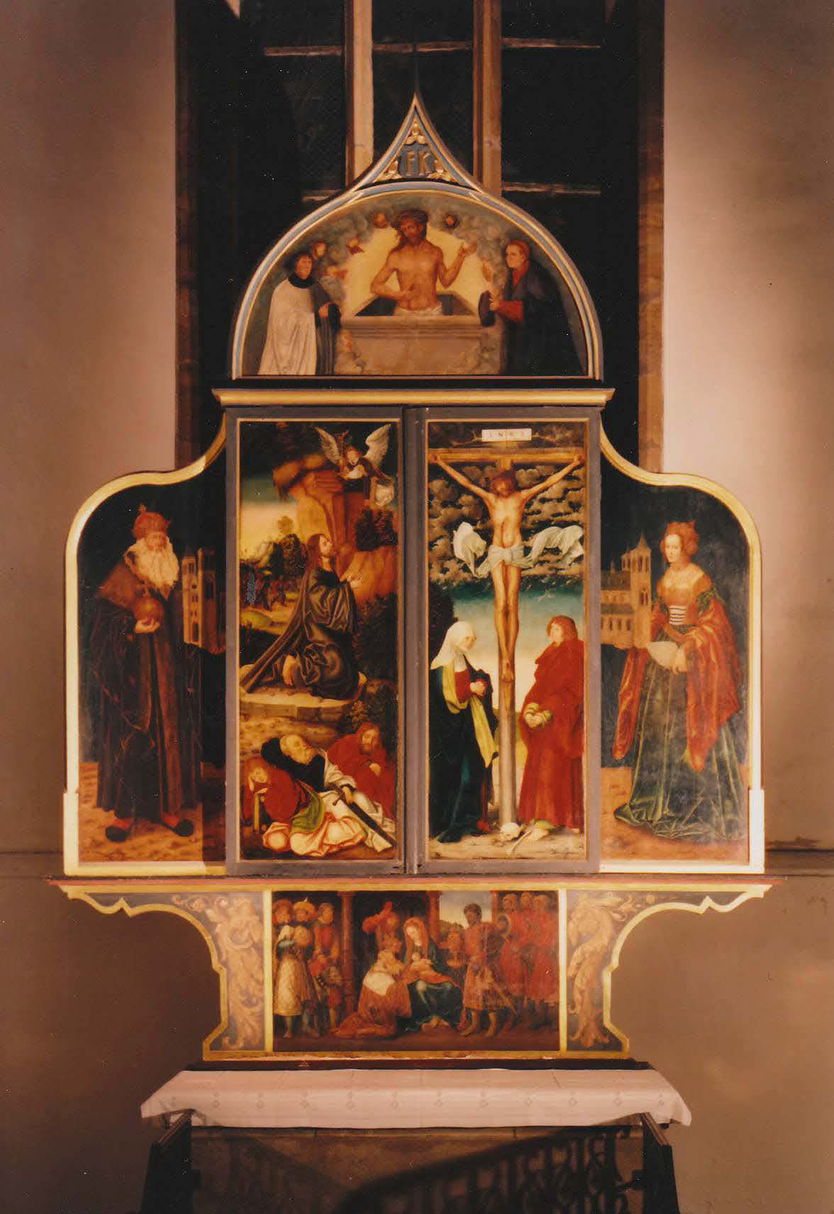 Of particular significance are the altar created by the workshop of Lucas Cranach the Elder in 1518 and the only historic ringing bell of 1482 still in existence, as well as the Tuchmacherglöckchen (Cloth Makers’ Bell) on the main spire.