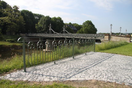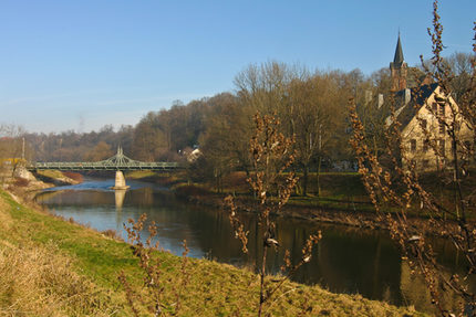 This bridge was built over Zwickauer Mulde in the very centre of town in 1900, after its former incarnation - a covered wooden bridge dating from the 17th century - was superseded by the then-modern steel rivet construction.