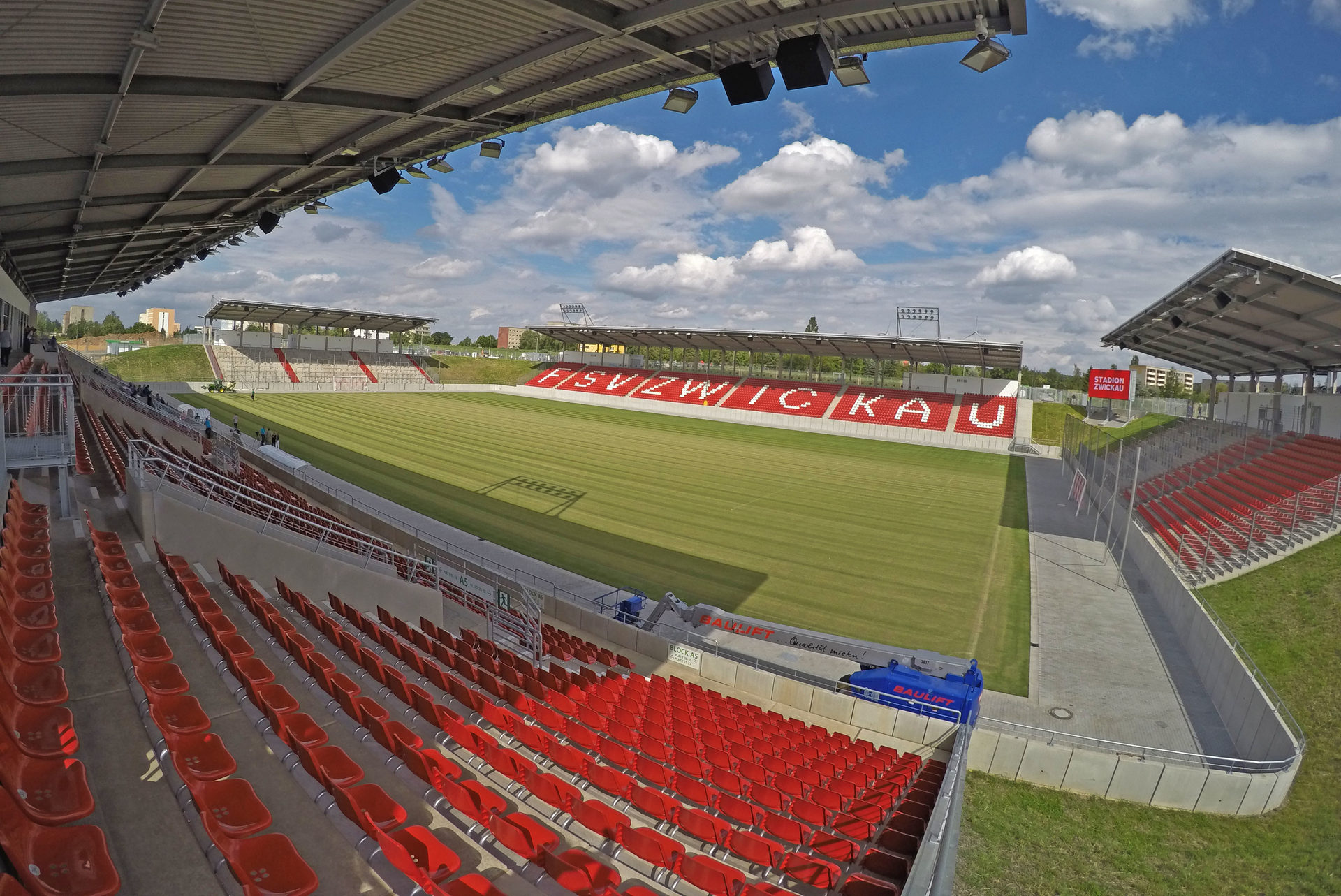 On 6th February 2015, the ground-breaking ceremony for the GGZ Arena took place for a major construction project in the Eckersbach district of Zwickau, namely a new home ground for the local football team, FSV Zwickau. The first match was played on 20th August 2016, a DFB cup fixture against HSV of Hamburg. The stands are all covered and have a total capacity of 10,134, of which 6,363 are seats and 3,771 standing places. In addition to office space for the club itself, the GGZ Arena also has a business suite with meeting rooms which can be hired for company events as well as for private parties. It is owned by GGZ (Gebäude- und Grundstücksgesellschaft Zwickau mbH).