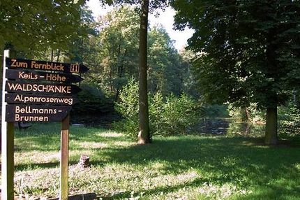 Besides forestry use, the improvement of the recreational value has a very long tradition. The park-like redesign of a 25 hectare area began already more than 100 years ago with the creation of the ponds at the Weißenborner Bach. Hiking trails were extended, very rare deciduous and coniferous trees and shrubs were planted, shelters and seating were built, and special areas with playground equipment, memorial stones and information boards were created. The annual flowering of the historic rhododendron and azalea plantations in May is a special highlight, but the 38 km long trail system also offers many opportunities to observe nature at any time of year.