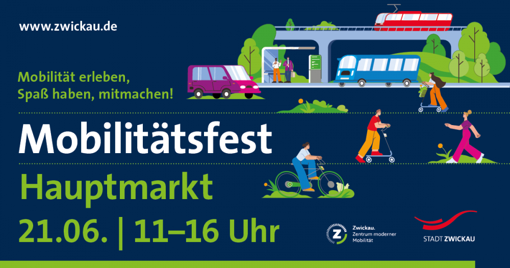 Am 21. Juni verwandelt sich der Zwickauer Hauptmarkt beim Mobilitätsfest in eine lebendige Erlebniswelt rund um Bewegung, Spiel und nachhaltige Fortbewegung! Freut euch auf offene Tanzworkshops, nostalgische Stadtrundfahrten im Trabant, actionreiche Segwaytouren, einen spannenden Parcours und vieles mehr. Kinder kommen bei zahlreichen Bewegungs- und Spielangeboten voll auf ihre Kosten – und alle Interessierten können sich aktiv in die Verkehrsentwicklung Zwickaus einbringen.