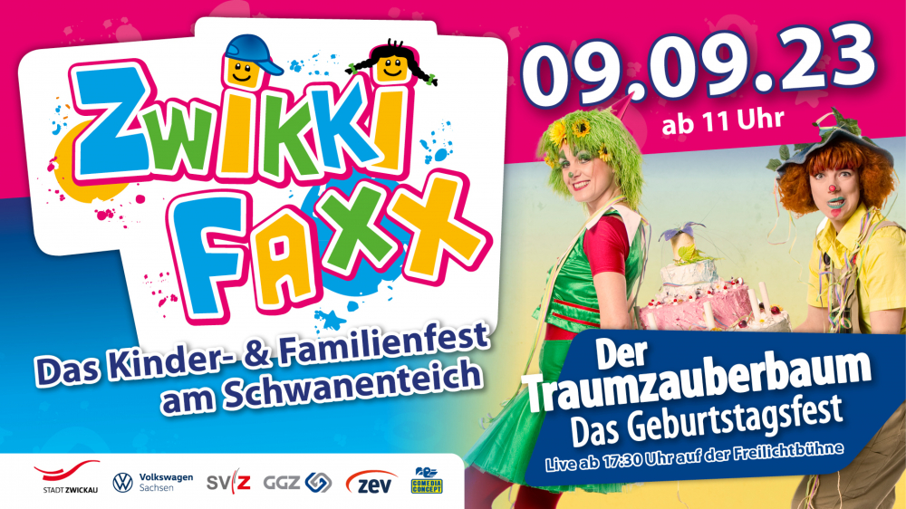 Sozusagen als Zuckerbonbon für begeistertes und fleißiges Mitmachen erwartet die Kinder zur 12. ZWIKKIFAXX-Auflage ab 17.30 Uhr ein besonders tolles Programm auf der Freilichtbühne, eine aufwändige Produktion, an der auch die Erwachsenen viel Freude und vielleicht so manche nostalgische Erinnerung haben werden: „Der Traumzauberbaum. Das Geburtstagsfest".