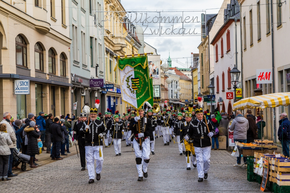 Glück auf! Die diesjährige Bergparade Zwickau startet am Samstag, den 14. Dezember, um 14 Uhr wieder vom Platz der Völkerfreundschaft durch die Innenstadt zum Vorplatz Nicolaischule. Das Abschlusskonzert findet ca. 14:45 Uhr auf dem Vorplatz der Nicolaischule (Katharinenstraße 18, 08056 Zwickau) statt.