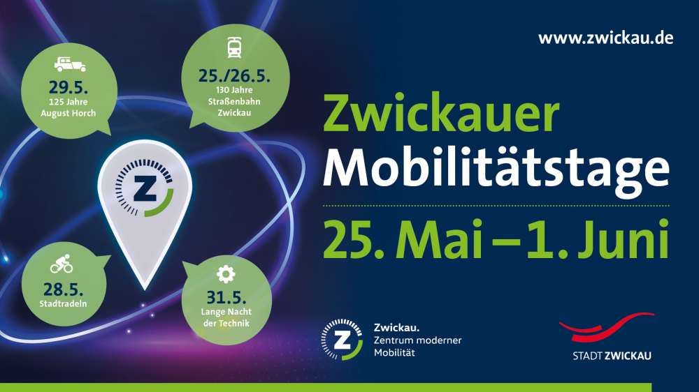 Im September 2022 beteiligte sich die Stadt Zwickau gemeinsam mit verschiedenen Partnern erstmals an der Europäischen Mobilitätswoche. In Auswertung der Veranstaltungen der letzten Jahre entstanden die Zwickauer Mobilitätstage. Neben verschiedenen Fachtagungen (u. a. Akkumulatorencampus, Tagung zur Energie und Mobilität) und einem Erlebnistag für Schüler im Volkswagen Bildungsinstitut und Volkswagen Fahrzeugwerk Zwickau (Mosel), können wir 130 Jahre Straßenbahn oder 125 Jahre August Horch feiern. Auch die Lange Nacht der Technik oder eine Frühschicht im August Horch Museum sind Bestandteil der Mobilitätstage. Mit den Veranstaltungen sollen verschiedene Aspekte von Mobilität beleuchtet werden und oft ein kleiner Blick in die Zukunft gewagt werden.